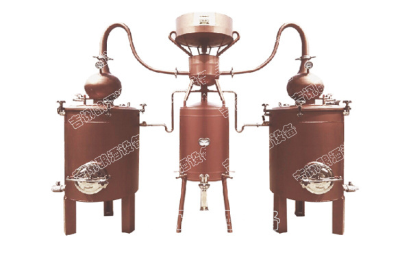 屬雙釜單次蒸餾機(jī)組,融合了白蘭地蒸餾器串釜蒸餾與果皮渣蒸餾機(jī)組分流盤冷凝冷卻和夏朗德蒸餾器球形回流精餾之獨(dú)特優(yōu)點(diǎn)。