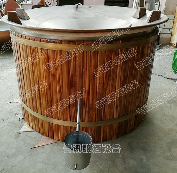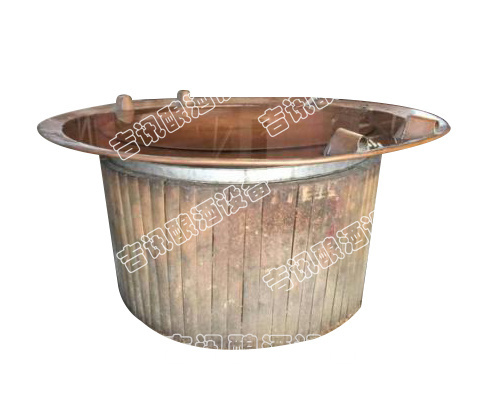 蒸酒甑桶由三大部件組成。下面燒水的鍋叫地鍋,中間木制裝料部分叫甑,上面加冷水凝酒的鍋叫天鍋。