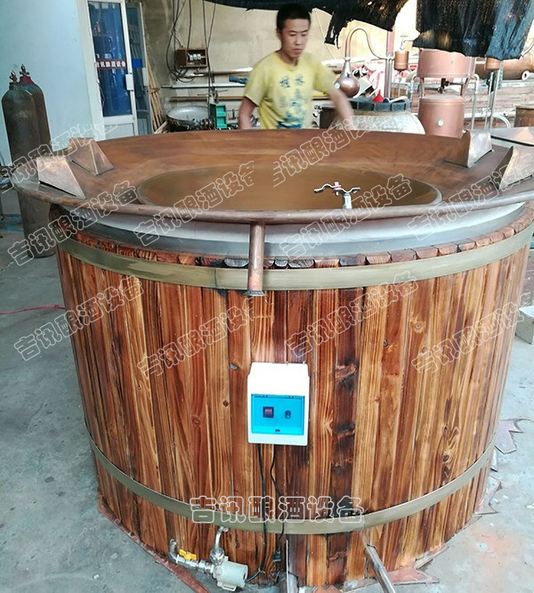 古法天鍋蒸餾釀酒,沒有經(jīng)過進一步的冷凝,而是酒蒸汽反復被蒸餾,出酒溫度高達50°以上,古法天鍋蒸餾溫度更高,酒精揮發(fā)更多。另一方面,古法天鍋蒸餾的出酒率更低。同樣多的酒糟,古法天鍋的出酒率僅為普通傳統(tǒng)蒸餾工藝出酒率的60%。